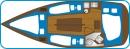 Wyposażenie dodatkowe: bramka do kladzenia masztu, sztywny sztag, roll fok, lazzy jack, instalacja wody - zbiornik, radio, lodówka, ogrzewanie, instalacja 230 V